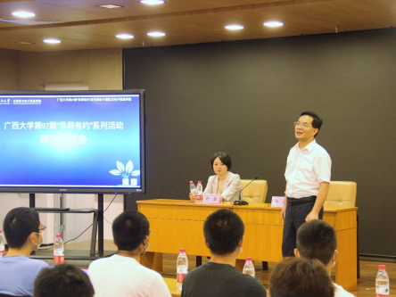 2022年9月24日星期六下午,由广西大学研究生会、广西大学计算机与电子信息学院研究生会主办的广西大学第97期“导师有约”系列活动在广西大学学生活动中心310室举行。本次活动主题为“有关学科创新与人才素质培养的交流”,邀请了广西大学计算机与电子信息学院党委书记钟诚教授和许嘉副教授主讲,采取线下和线上方式同步进行。