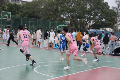 同学们在篮球赛场上团结协作、挥洒汗水