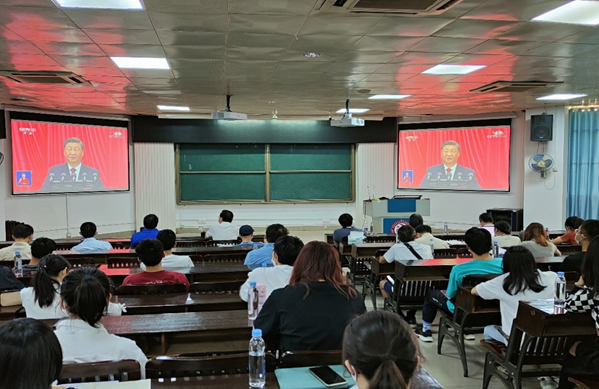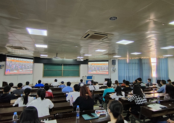 学院师生聚精会神收看直播,不时热烈鼓掌。开幕式后,学院师生交流分享心得体会,纷纷表示,要将党的二十大精神深入贯彻落实到日常学习工作中去,凝心聚力、团结奋斗、踔厉奋发,全面推进中华民族伟大复兴!