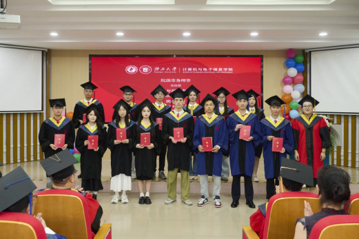 常务副院长张振荣教授致以毕业寄语。他深情回顾了毕业生们在学院度过的灿烂青春,赞扬了他们在学业、思想及社会责任上的卓越表现,对即将开启新程的同学提出了三点期望:一是永葆创新锐气,勇攀科技高峰。将“创新”融入血脉,让“创造”成为习惯。二是坚守科技伦理,恪守行业底线。时刻牢记科技向善的宗旨,做有温度、有担当的科技工作者。三是胸怀家国天下,服务区域发展。将个人理想融入国家发展和民族复兴的伟大事业中,用所学所长服务社会、贡献国家。