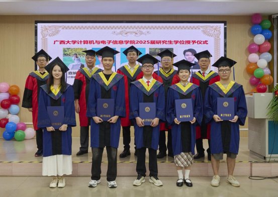 最后,全体师生共同奏唱校歌,在激昂的旋律中,广西大学计算机与电子信息学院2025届毕业典礼暨学位授予仪式正式落下帷幕。