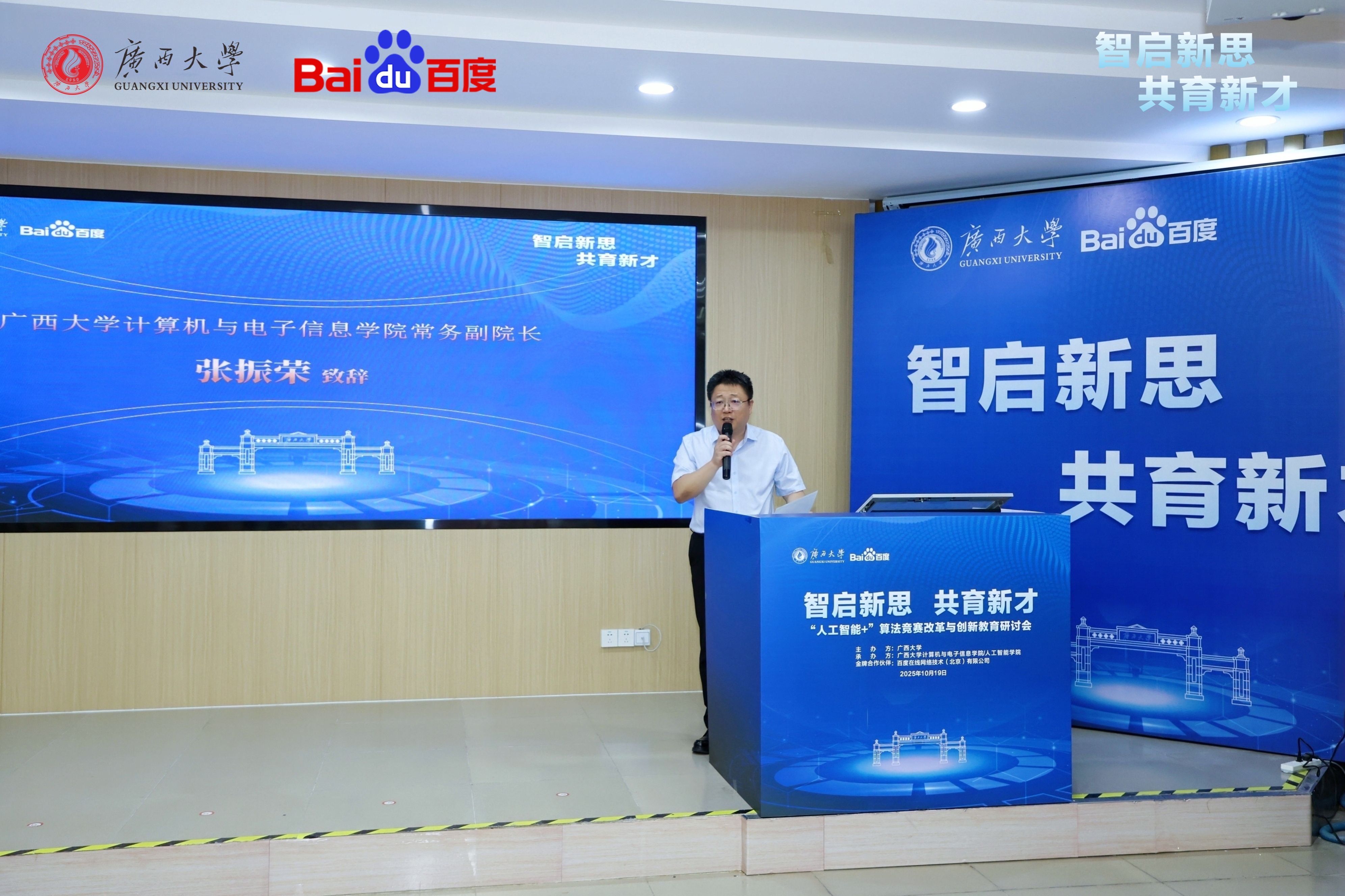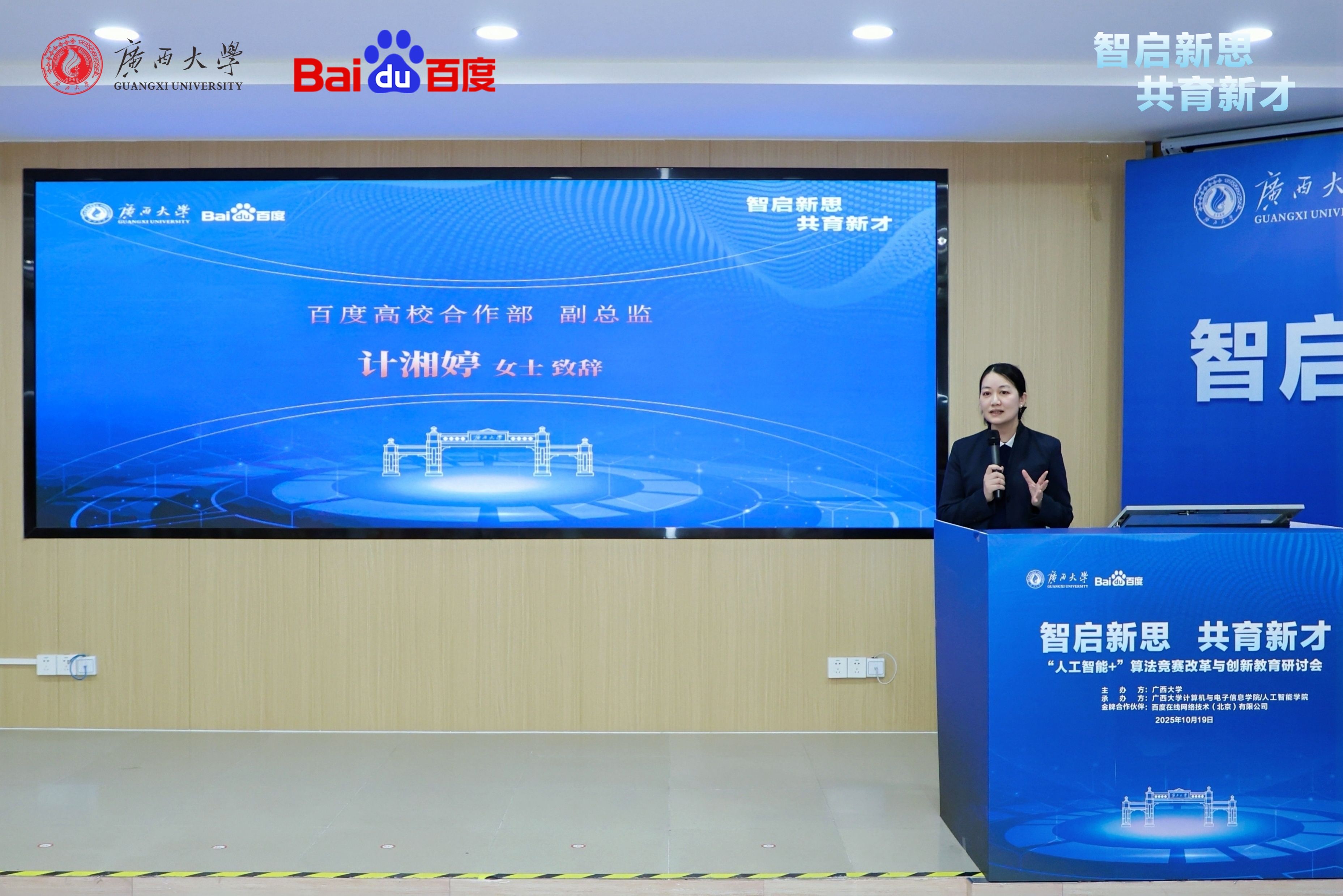 2025年10月19日,广西大学-百度集团“人工智能+”算法竞赛改革与创新教育研讨会在威博
