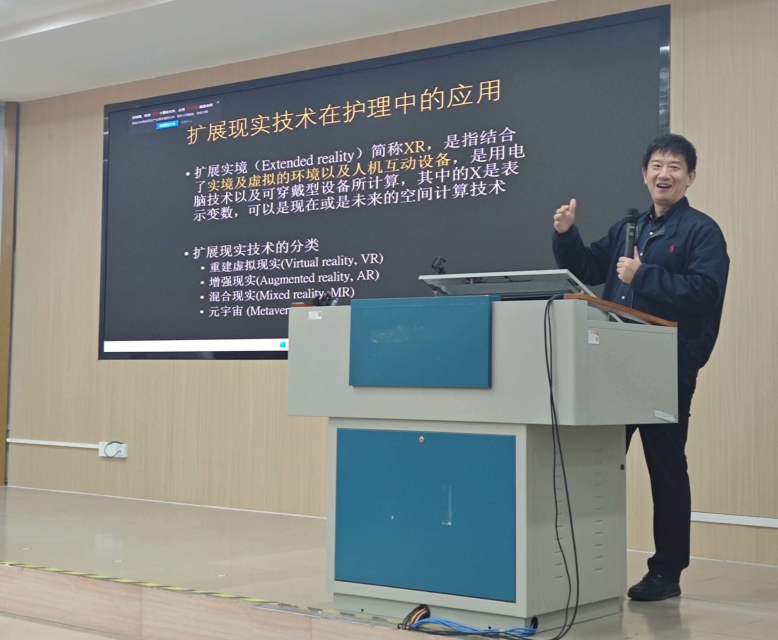 在首场报告中,秦璟教授围绕“先进扩展现实与人工智能技术在健康护理中的应用”主题,系统介绍了其团队在虚拟现实(VR)与增强现实(AR)技术赋能康复医学领域的最新研究成果。秦璟教授以深入浅出、幽默生动的方式,结合真实案例,展示了虚拟现实技术在神经康复和行为干预中的多种创新应用。