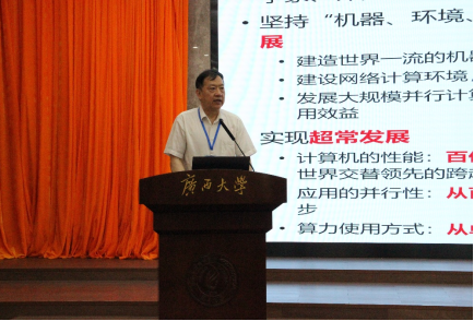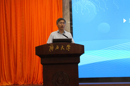 院长武新章教授主持该会议。广西大学副校长马少健教授、中国科学院院士钱德沛院士、中国科学院软件研究所副所长钟华研究员、广西大数据学会钟穗会长、华中科技大学计算机科学与技术学院院长冯丹教授、中山大学沈鸿教授、广西产业技术研究院副院长杜文宏教授、广西壮族自治区信息中心信息基础设施处副处长李森等出席会议。广西大学在校师生近两百人参加会议。