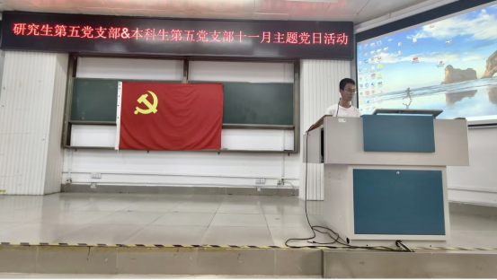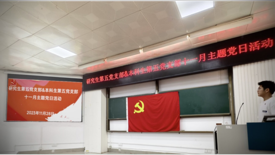 研究生第五党支部和本科生第五党支部在学院214报告厅联合开展主题党日活动。本次活动由研究生第五党支部副书记夏淑成主持,共有63名党员同志参会。