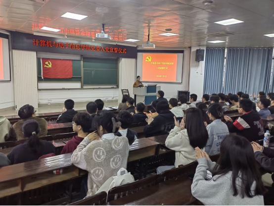 党委副书记邓珍琪同志、专职组织员薛金凤同志、研究生第一党支部支委姚露姗同志以及新发展的54名党员同志参加会议。
