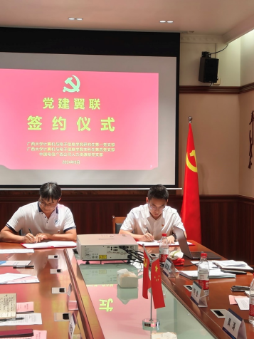 研究生第一党支部、本科生第四党支部和中国电信广西分公司人力资源部支部共同签订“党建翼联”主题实践合作书。