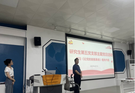 研究生第五党支部在学院一楼报告厅,组织开展2023年6月份主题党日活动。本次活动由党支部副书记苑文卓同志主持,学院党委书记钟诚同志参会指导,研究生第五党支部全体党员参加。