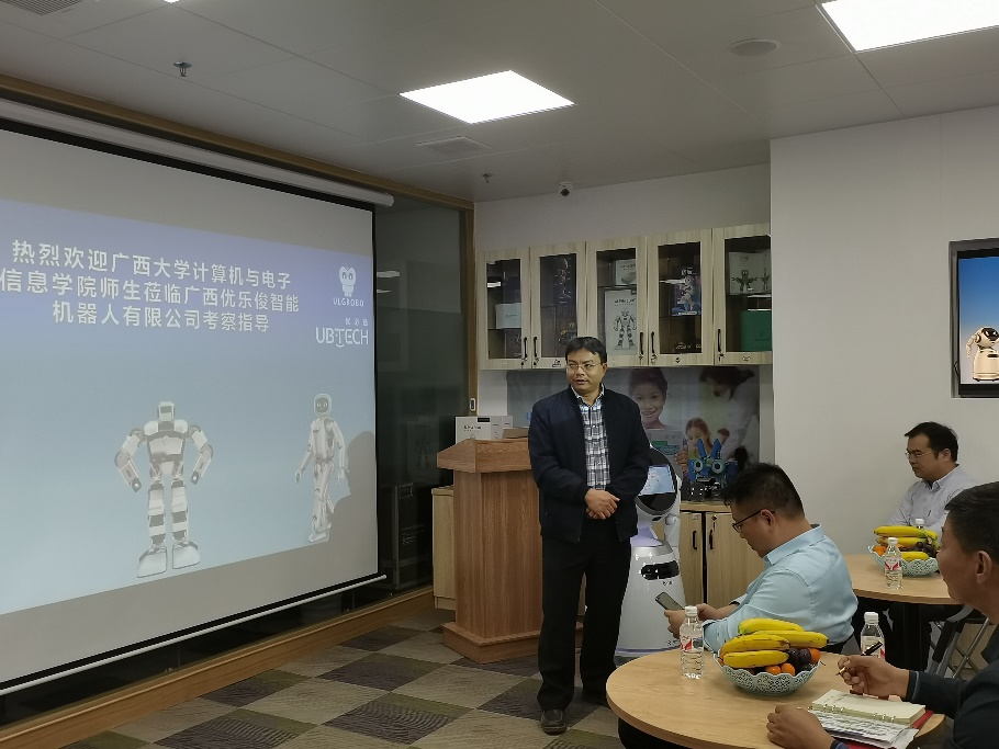 为进一步汇聚校友资源,凝聚校友力量,充分发挥校友在学院人才培养、就业创业等方面的促进作用,2020年11月25日下午,学院常务副院长张振荣,学院党委副书记邓珍琪,学院辅导员顾春雨,以及在校研究生和本科生代表一行,赴计算机应用1995级校友吴小奕创办的广西优乐俊智能机器人有限公司走访,并开展交流和考察。
