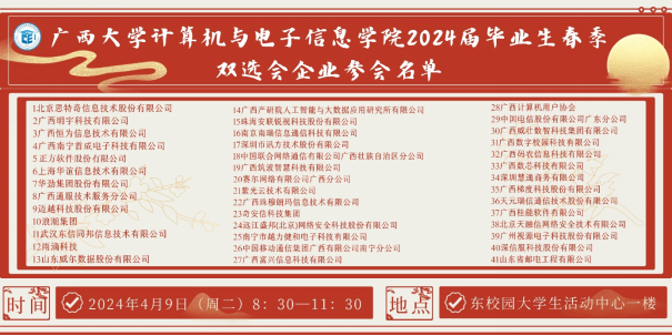 在东校园大学生活动中心一楼成功举办2024届毕业生春季双选会。广西区内外41家企事业单位、校友企业为威博